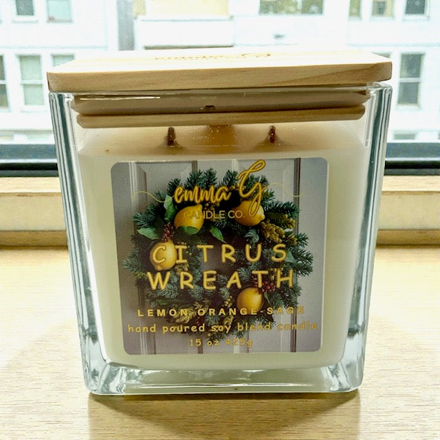 Emma G's triple wood wick candles are made with a luxurious scented soy blend wax, each hand poured into our beautiful clear square glass vessel, adorned with a beautiful bamboo lid with a silicone seal and our company logo. This lid is perfect to use to store your candle or even snuff the candle. Our three perfectly placed crackling wood wicks enhances the candle's melt pool for a more diverse and enhanced fragrance to fill your space. This candle has an elegant design and will sure to be a topic of conversation.