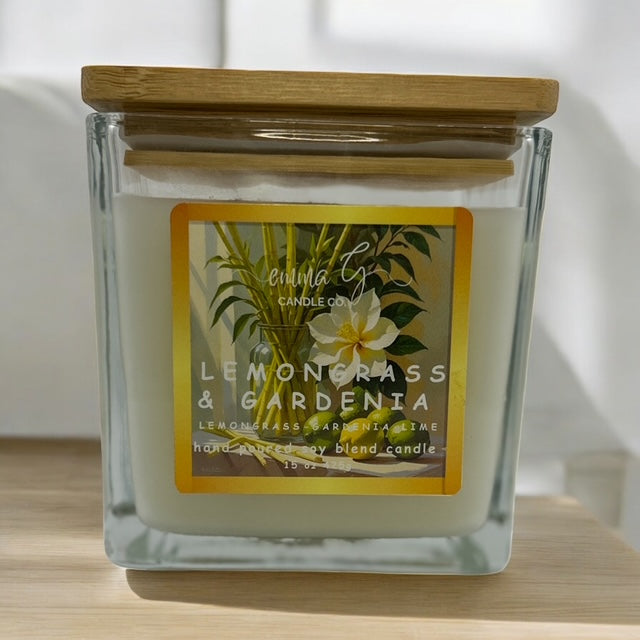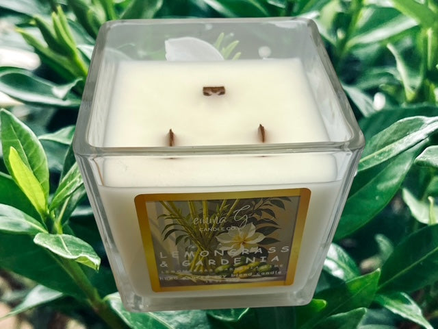 Emma G's triple wood wick candles are made with a luxurious scented soy blend wax, each hand poured into our beautiful clear square glass vessel, adorned with a beautiful bamboo lid with a silicone seal and our company logo. This lid is perfect to use to store your candle or even snuff the candle. Our three perfectly placed crackling wood wicks enhances the candle's melt pool for a more diverse and enhanced fragrance to fill your space. This candle has an elegant design and will sure to be a topic of conversation.