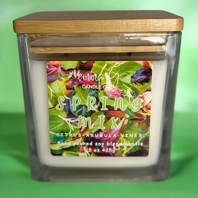 Emma G's triple wood wick candles are made with a luxurious scented soy blend wax, each hand poured into our beautiful clear square glass vessel, adorned with a beautiful bamboo lid with a silicone seal and our company logo. This lid is perfect to use to store your candle or even snuff the candle. Our three perfectly placed crackling wood wicks enhances the candle's melt pool for a more diverse and enhanced fragrance to fill your space. This candle has an elegant design and will sure to be a topic of conversation.