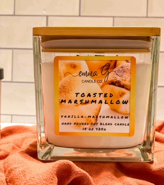 Emma G's triple wood wick candles are made with a luxurious scented soy blend wax, each hand poured into our beautiful clear square glass vessel, adorned with a beautiful bamboo lid with a silicone seal and our company logo. This lid is perfect to use to store your candle or even snuff the candle. Our three perfectly placed crackling wood wicks enhances the candle's melt pool for a more diverse and enhanced fragrance to fill your space. This candle has an elegant design and will sure to be a topic of conversation.