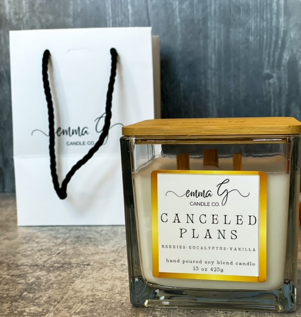 Emma G's triple wood wick candles are made with a luxurious scented soy blend wax, each hand poured into our beautiful clear square glass vessel, adorned with a beautiful bamboo lid with a silicone seal and our company logo. This lid is perfect to use to store your candle or even snuff the candle. Our three perfectly placed crackling wood wicks enhances the candle's melt pool for a more diverse and enhanced fragrance to fill your space. This candle has an elegant design and will sure to be a topic of conversation.
