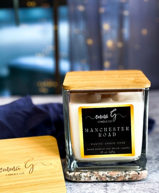 Emma G's triple wood wick candles are made with a luxurious scented soy blend wax, each hand poured into our beautiful clear square glass vessel, adorned with a beautiful bamboo lid with a silicone seal and our company logo. This lid is perfect to use to store your candle or even snuff the candle. Our three perfectly placed crackling wood wicks enhances the candle's melt pool for a more diverse and enhanced fragrance to fill your space. This candle has an elegant design and will sure to be a topic of conversation.