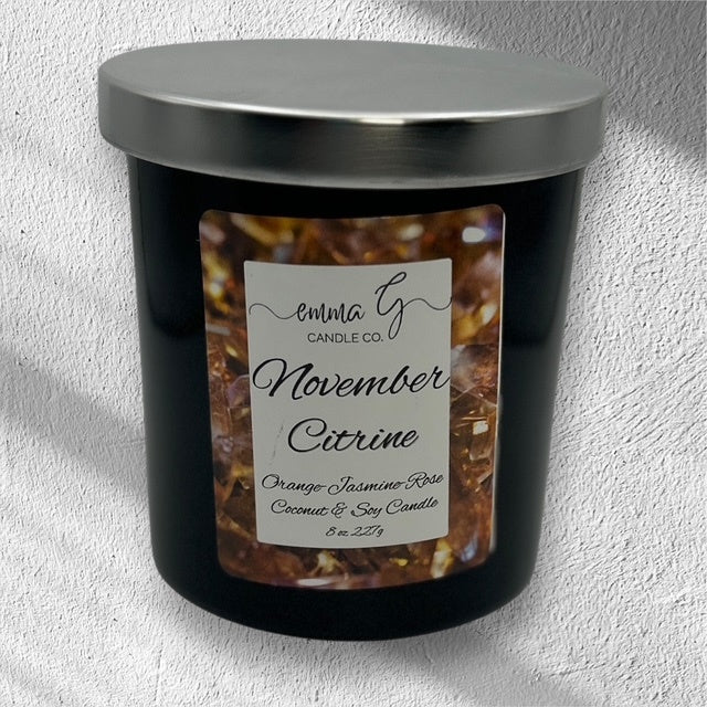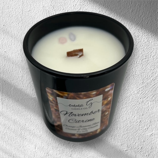 A fragrance as golden and radiant as the November birthstone, bursting with warmth and positivity. Sparkling lime and sun-kissed oranges open the Citrine gemstone inspired scent with a bright, citrusy energy, leading into a heart of lotus water, floating jasmine, and delicate garden ivy. A warm base of amber woods and white rose lingers like the last rays of a setting sun. A scent of joy, abundance, and luminous beauty.