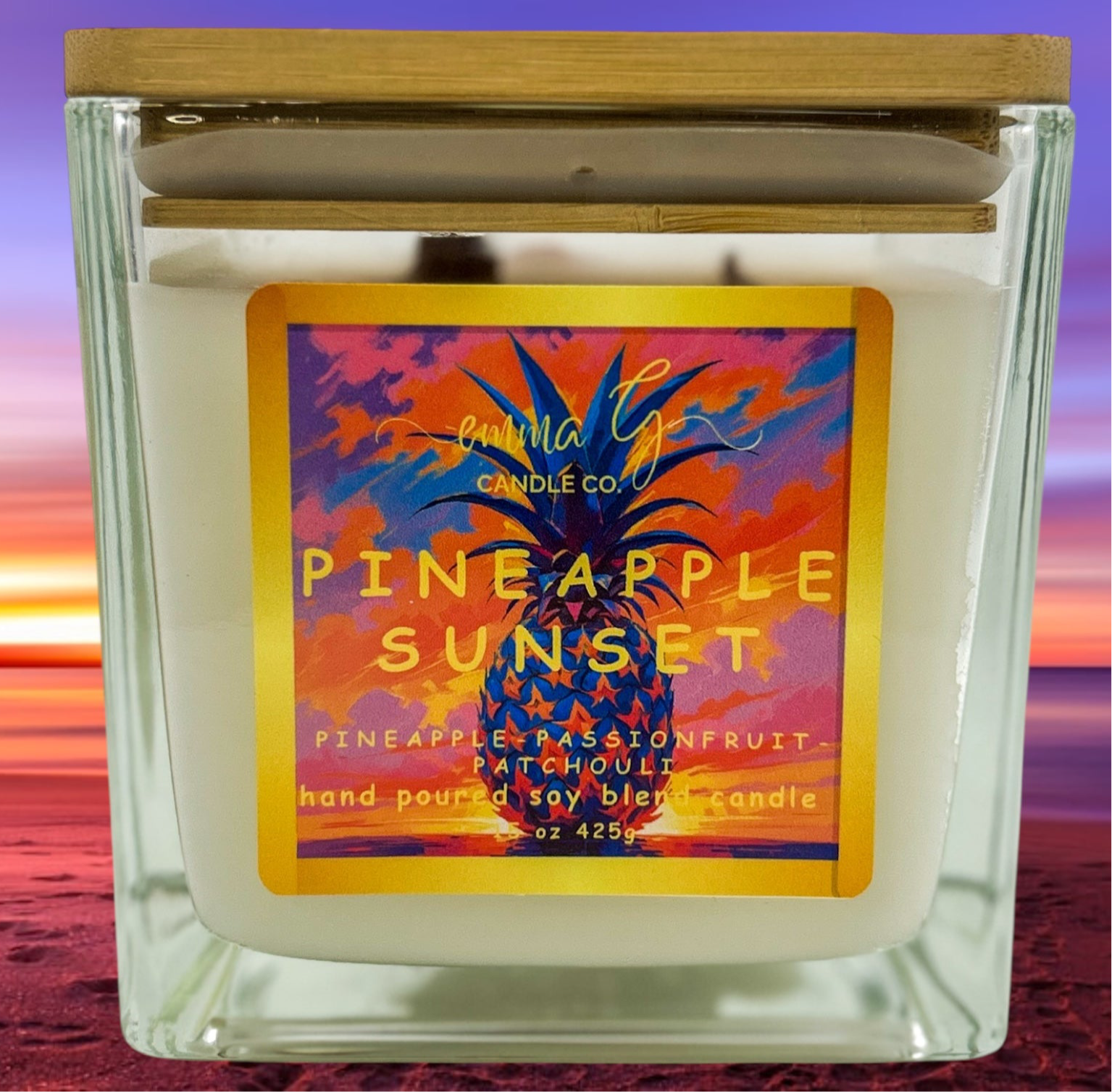 Emma G's triple wood wick candles are made with a luxurious scented soy blend wax, each hand poured into our beautiful clear square glass vessel, adorned with a beautiful bamboo lid with a silicone seal and our company logo. This lid is perfect to use to store your candle or even snuff the candle. Our three perfectly placed crackling wood wicks enhances the candle's melt pool for a more diverse and enhanced fragrance to fill your space. This candle has an elegant design and will sure to be a topic of conversation.